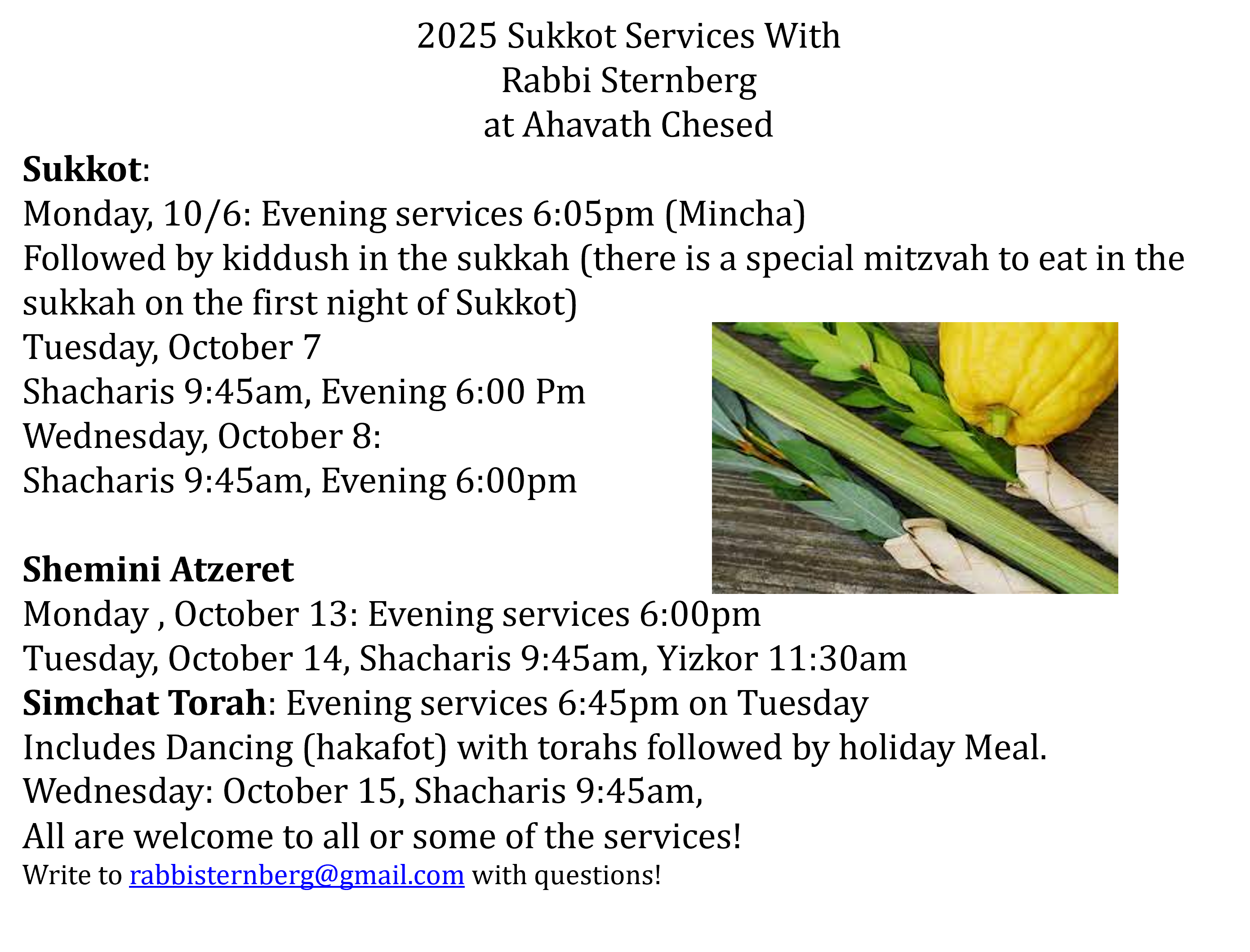 Our Rabbi: Rabbi Avrohom Sternberg rabbisternberg@gmail.com
